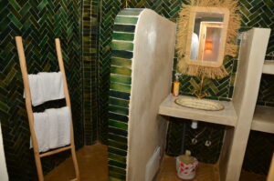 Pensée pour accueillir confortablement jusqu’à trois voyageurs, la chambre Rihla associe une literie de haute qualité à une décoration marocaine soignée. La belle salle d’eau privative, parée d’authentiques zelliges, est entièrement équipée pour votre bien-être : linge de toilette moelleux, savon, gel douche et shampoing sont gracieusement mis à votre disposition. Si besoin, notre équipe se fera un plaisir de vous prêter un sèche-cheveux.